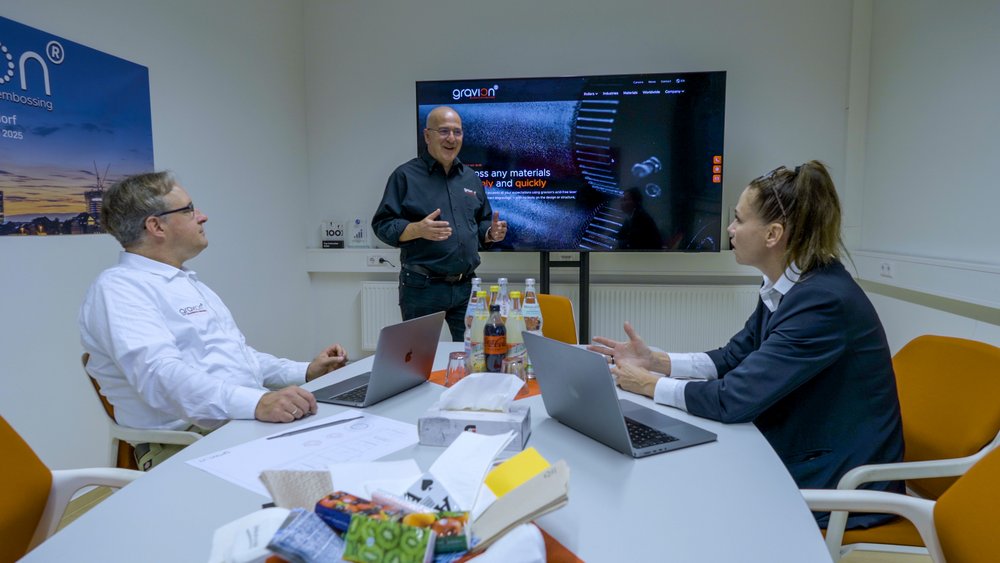 After lots of work developing, refining and investing in his ideas, he had a breakthrough: Nowadays, gravion uses no acid at all in its manufacturing process, using clean laser technology even for the toughest materials. The embossing results this achieves are significantly more consistent, which means they can be stacked and reproduced more successfully.